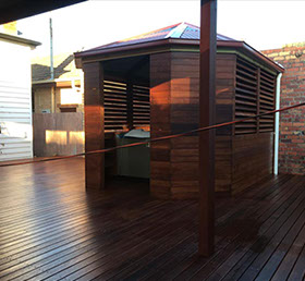 Coastal plan living Bali huts, open pergolas and gazebos all built out of high end quality materials with merbau beams to cypress pine structures.